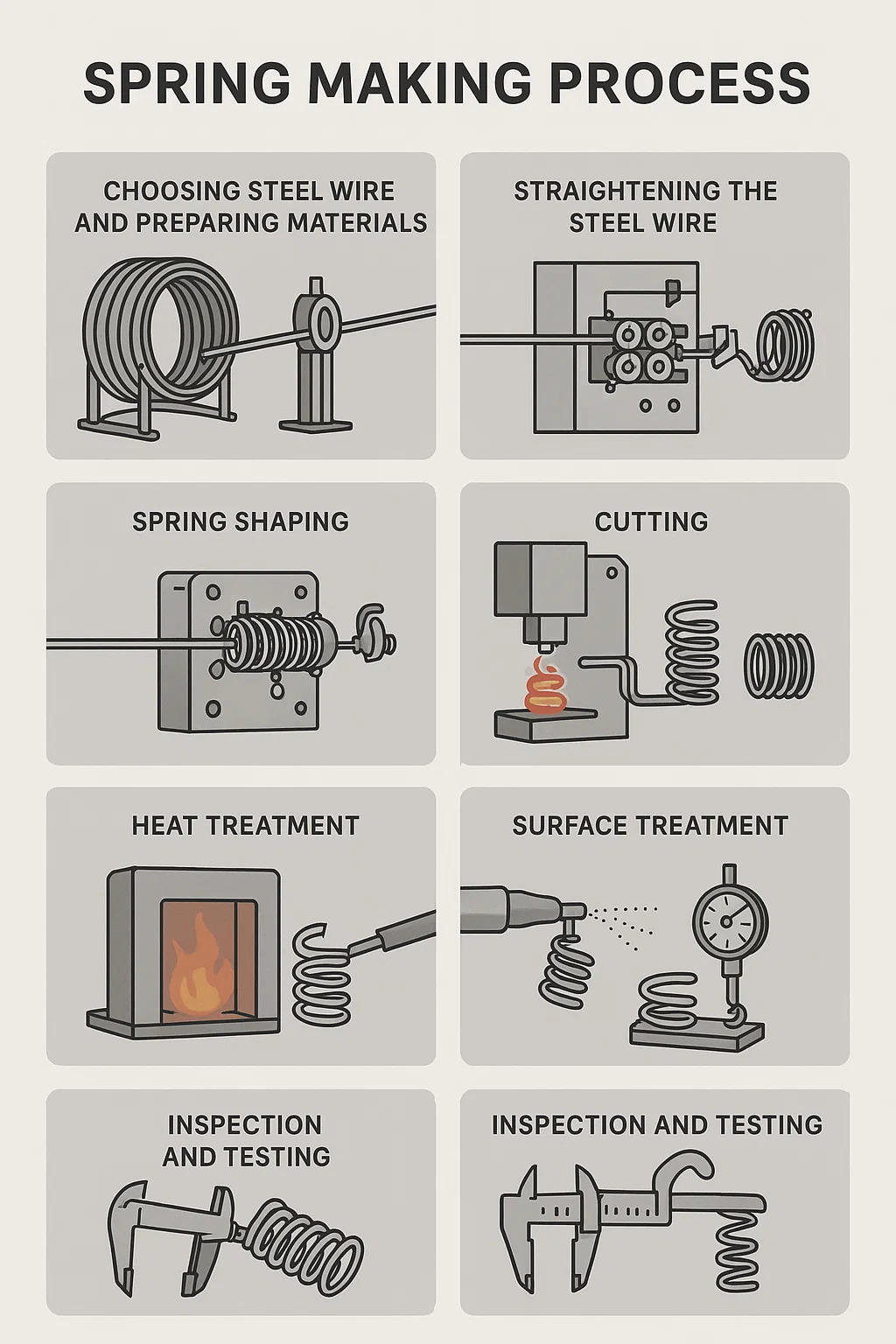 • Enfriamiento: El resorte se coloca rápidamente en aceite o agua para enfriar y endurecer el alambre de acero.